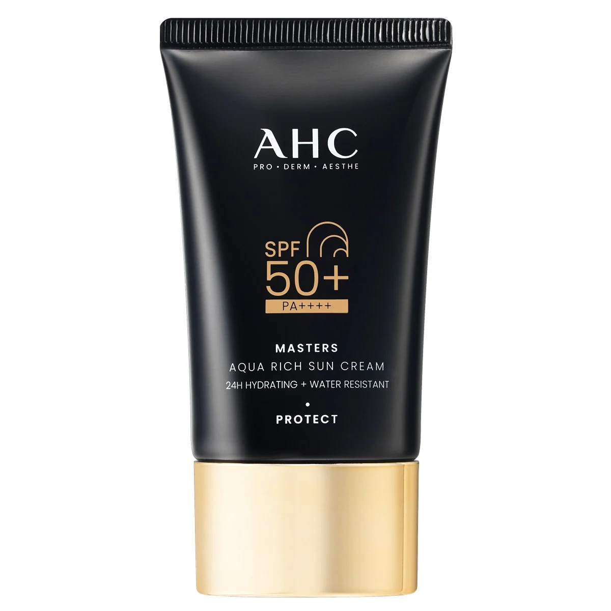 AHC Masters Aqua Rich Sun Cream 50ml is a lightweight, moisturizing sunscreen with a high sun protection factor (SPF50+ PA++++). It has a refreshing, watery texture that absorbs quickly without feeling sticky. Formulated with ingredients like Centella Asiatica and ceramides, it provides a clean protective barrier while delivering 24-hour hydration and soothing care for the skin. Ideal for daily outdoor activities, it helps defend against UV rays, infrared radiation, and dust, without leaving a white cast. *Tested by a third-party laboratory (2021, Korea), results evaluated by instruments after 20 participants used the product once. #Tested by a third-party laboratory (2022, Korea), results evaluated by instruments after 23 participants used the product for 2 weeks. ^ Not referring to sun protection effect."
