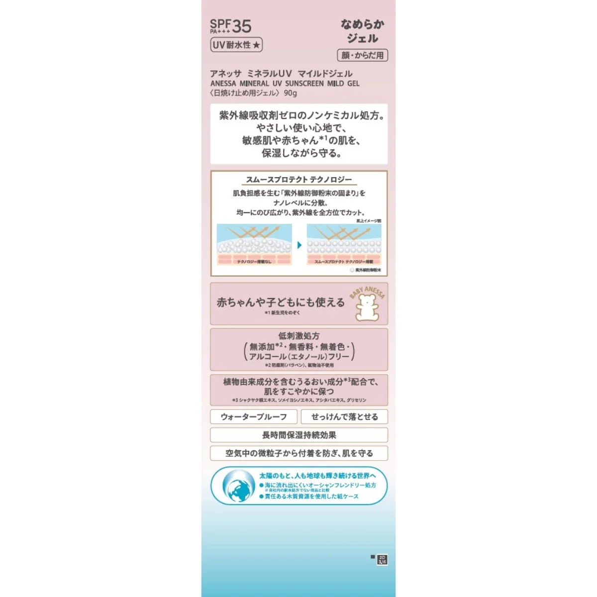 Anessa Mineral UV Sunscreen Mild Gel SPF35 PA+++ 90g. Product facts, price, stock and delivery information are shown on this page.
