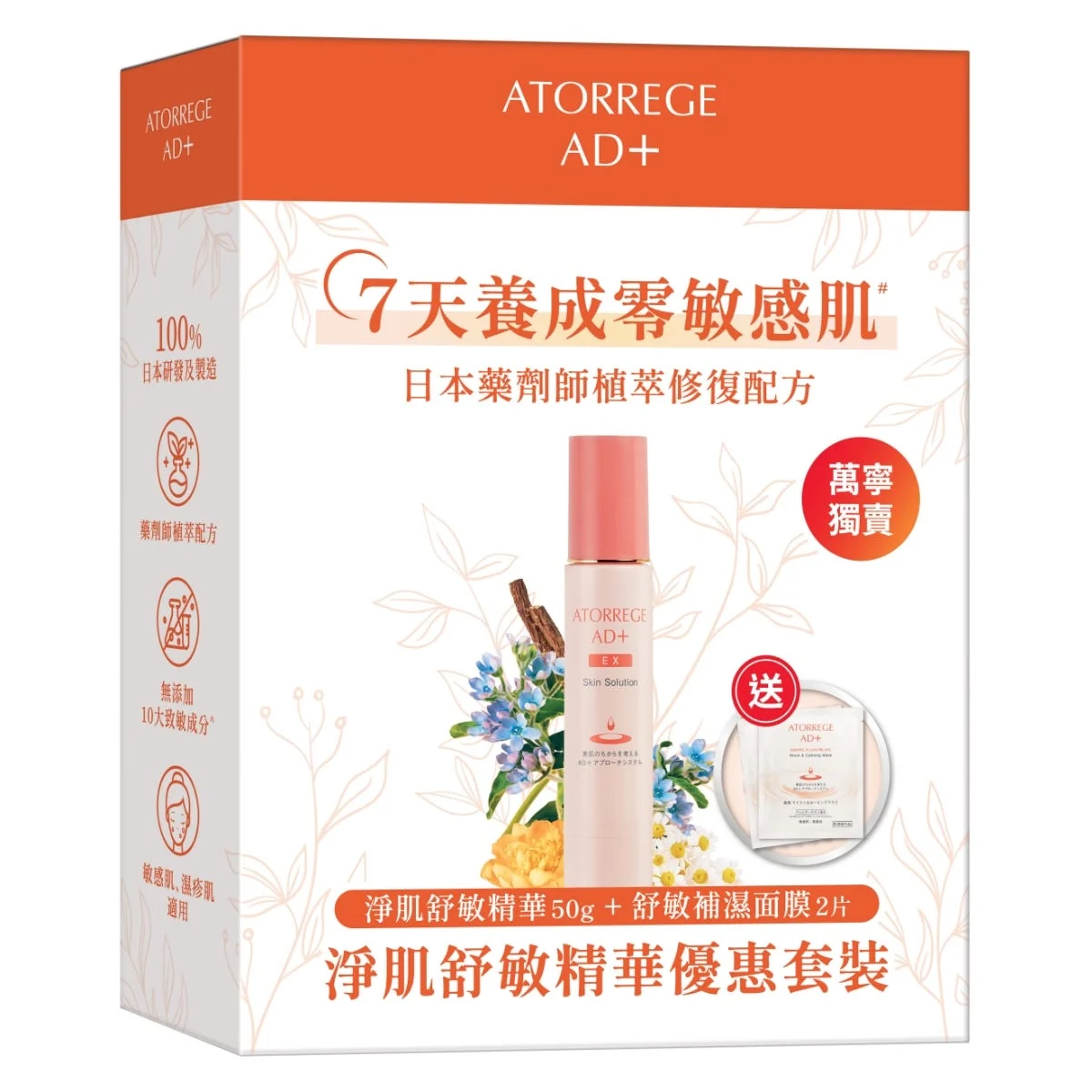 Atorrege AD+ Skin Solution Set (EX Skin Solution 50g + Moist & Calming Mask 2pcs). Product facts, price, stock and delivery information are shown on this page.