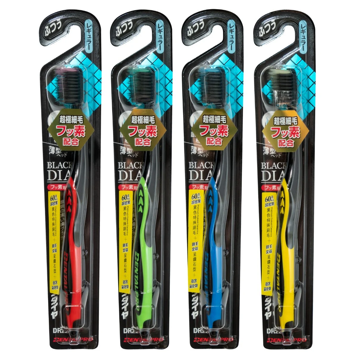 Ultra-dense bristle flocking technology – 61 hole. Black color special bristles which is called Platinum Colloid Ceramics (PCC) bristle, PCC bristle is developed by DENTALPRO. An innovate four-angle diamond shaped + fluorine compnd bristle