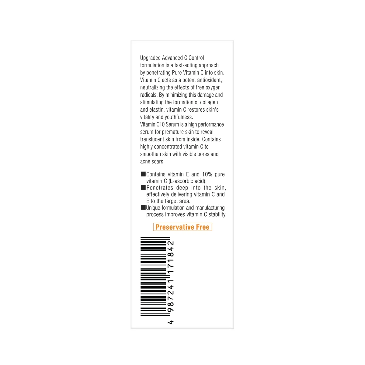 Vitamin E, 10% pure vitamin C (L-ascorbic acid)