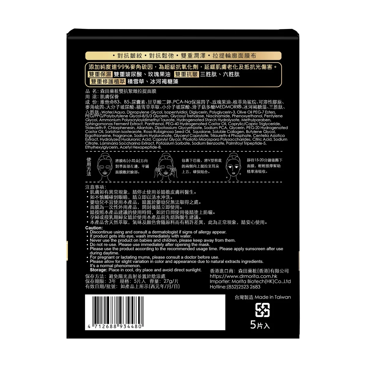 Dr.Morita Dual Firming V-Lifting Mask 5pcs. Product facts, price, stock and delivery information are shown on this page.