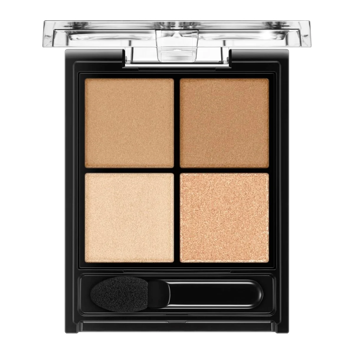 Four colors eye shadow palette, the contrast between the two opposite textures of which adds dimension to the eyes. Two muted and matte colors blend naturally and expand the eye area. Delicate glossy glitter shows a clear and bright luster. Large grain glitter gives high impact gorgeous shine.