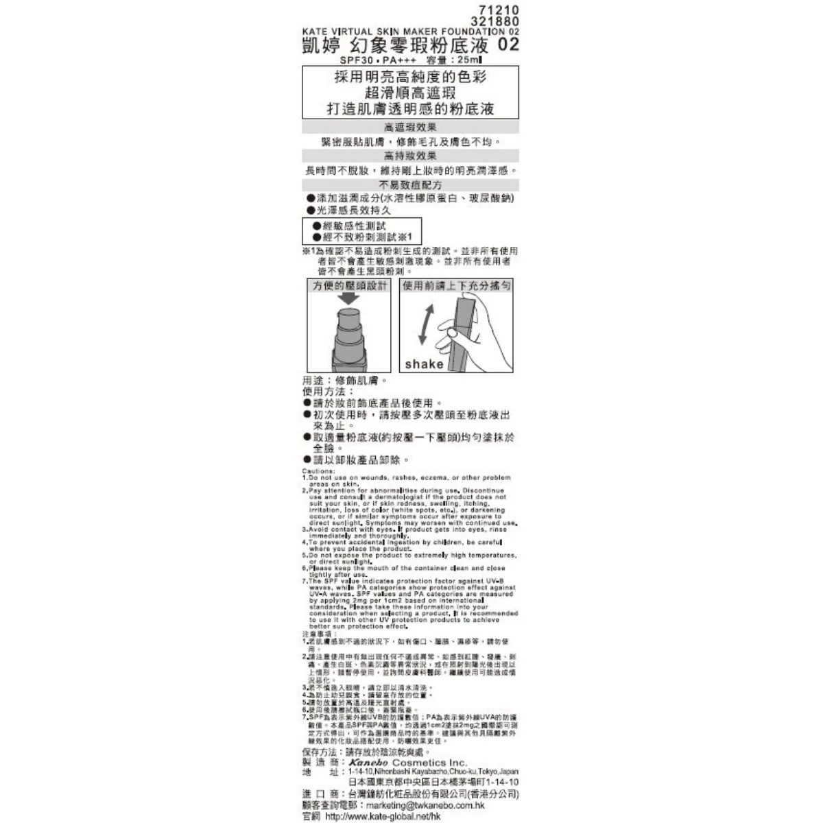 Kate Virtual Skin Maker Foundation 02 25ml Kate Virtual Skin Maker Foundation 02 25ml