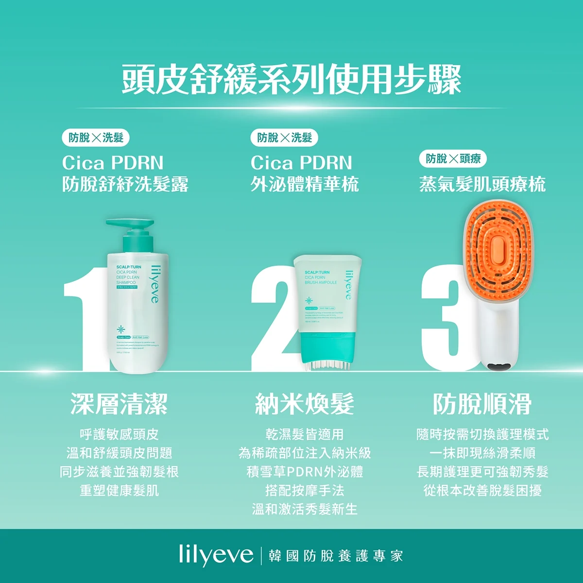 Water, Sodium C14-16 Olefin Sulfonate, Cocamidopropyl Betaine, Menthol, Mentha Arvensis Extract, Eucalyptus Globulus Leaf Extract, Lycium Barbarum Fruit Extract, Aloe Barbadensis Leaf Extract, Corchorus Olitorius Leaf Extract, Cymbopogon Citratus Extract, Laminaria Japonica Extract, Vigna Radiata Seed Extract, Glycine Max (Soybean) Seed Extract, Terminalia Chebula Fruit Extract, Erythritol, Ceratonia Siliqua (Carob) Fruit Extract, Camellia Japonica Leaf Extract, Diospyros Kaki Fruit Extract, Pueraria Lobata Root Extract, Pinus Palustris Leaf Extract, Ulmus Davidiana Root Extract, Oenothera Biennis (Evening Primrose) Flower Extract, Melia Azadirachta Leaf Extract, Melia Azadirachta Flower Extract, Polygonum Multiflorum Root Extract, Houttuynia Cordata Extract, Lactobacillus Ferment, Salicylic Acid, Dexpanthenol, Niacinamide, Cocamide MEA, Sodium Chloride, Sodium Benzoate, Glycerin, Citric Acid, Polyquaternium-10PPG-3 Caprylyl Ether, Disodium EDTA, Guar Hydroxypropyltrimonium Chloride, Butylene Glycol, Piroctone Olamine, Methylpropanediol, Climbazole1,2-HexanediolGlyceryl Caprylate, CyclodextrinLactic Acid, Centella Asiatica Extract(100ppb), Sodium DNA(100ppb), Ethylhexylglycerin, Sodium Hyaluronate, Hydrolyzed Hyaluronic Acid, Caprylic/Capric Triglyceride, Hydrogenated Lecithin, Cholesterol, Sodium Acetylated Hyaluronate, Fragrance