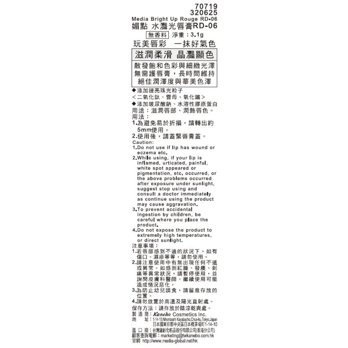 1. Do not use if lip has wound or eczema etc. 2. While using, if your lip is inflamed, urticated, painful, white spot appeared or pigmentation, etc. occurred, or the above problems occurred after exposure under sunlight, suggest stop using and consult a doctor immediately as continue using the product may cause aggravation. 3. To prevent accidental ingestion by children, be careful where you place the product. 4. Do not expose the product to extremely high temperatures, or direct sunlight.