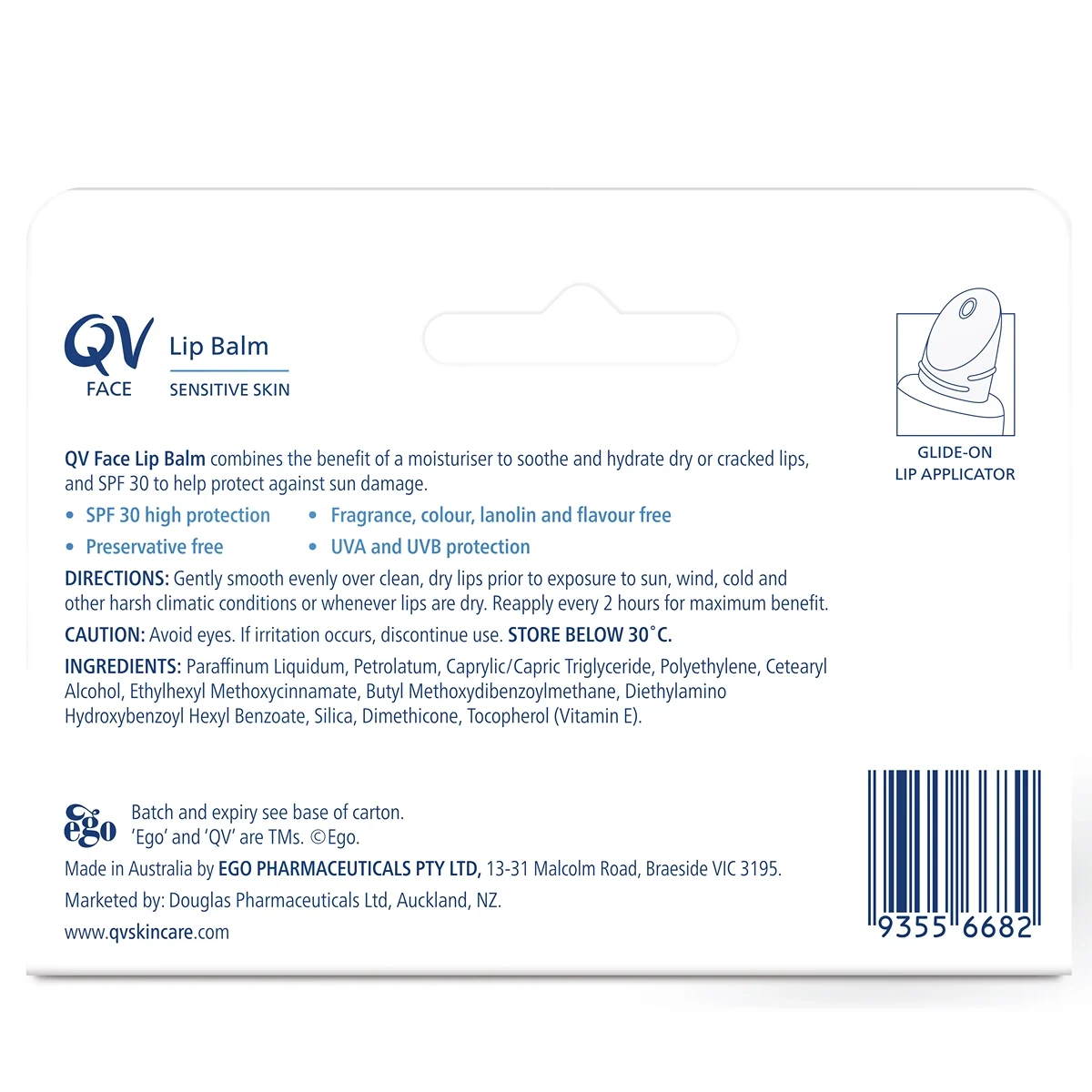 QV Lip Balm SPF30 15g. Product facts, price, stock and delivery information are shown on this page.