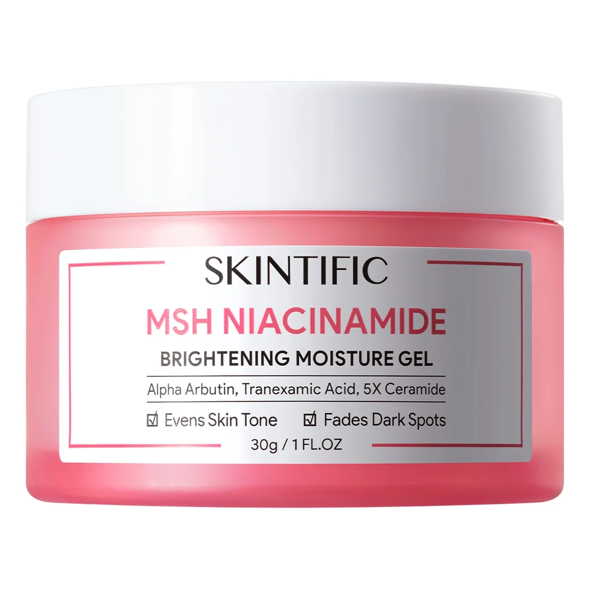 MSH Niacinamide Brightening Moisturizing Gel has a lightweight texture that absorbs quickly to help keep skin looking fresh. Formulated with SKINTIFIC's exclusive MSH Niacinamide, it combines two lightweight yet highly effective brightening ingredients – alpha-arbutin and tranexamic acid – to reveal brighter looking skin. Centella asiatica extract and 5X ceramide are specially added to help soothe the skin while maintaining the stability of the skin barrier.
