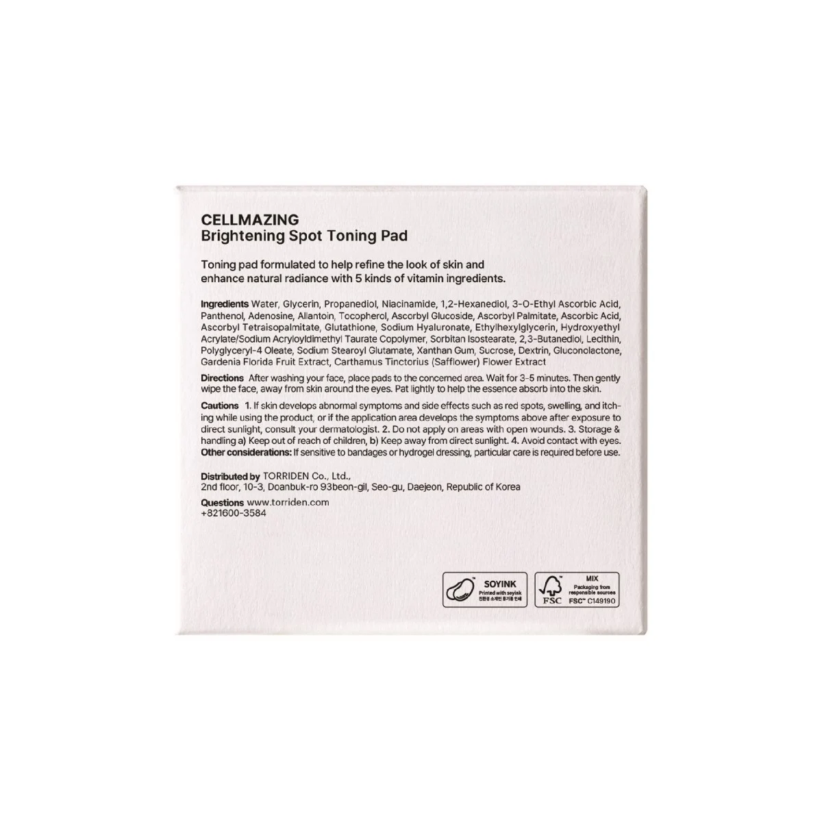 Toning pad formulated to help refine the look of skin and enhance natural radiance with 5 kinds of vitamin ingredients.