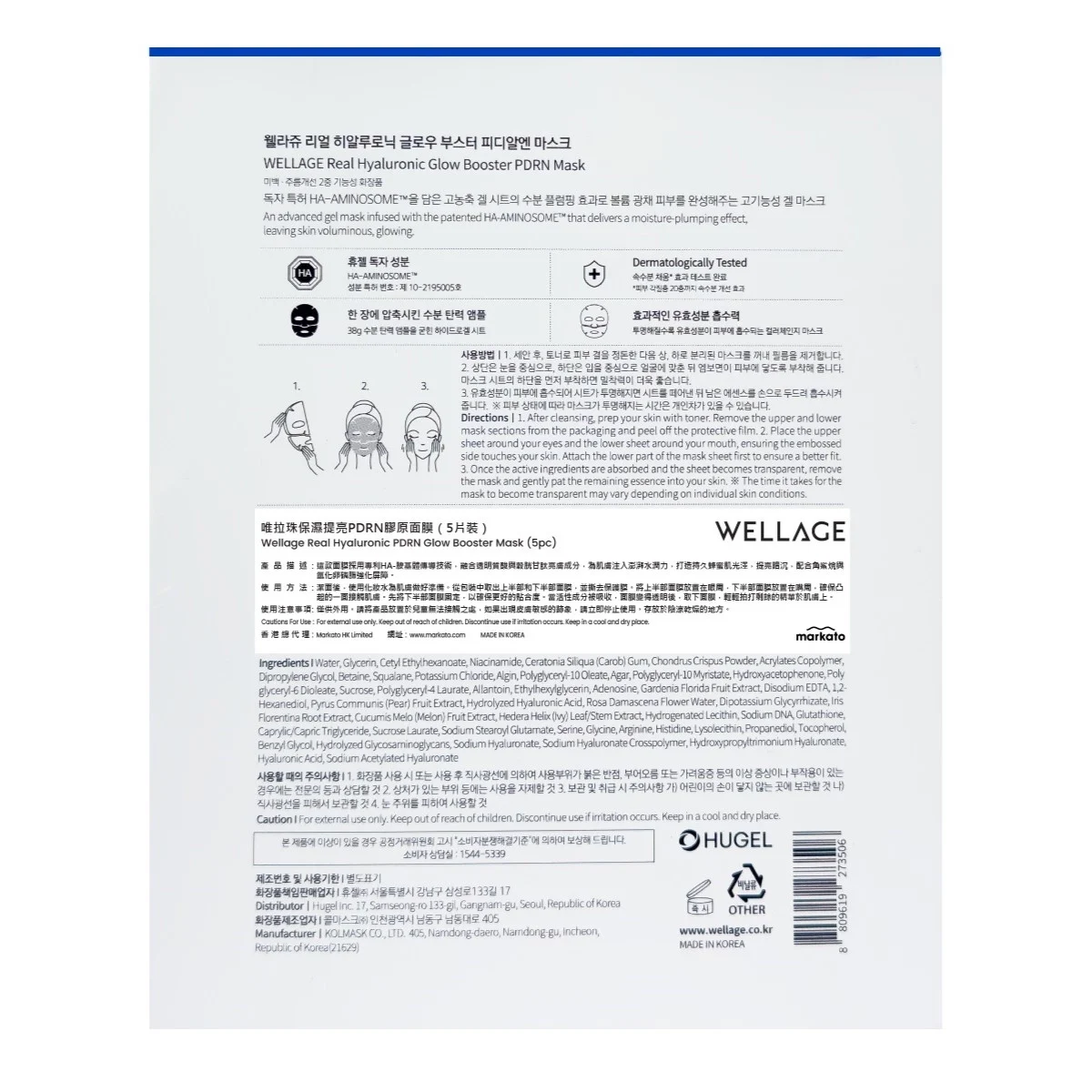 Water, Glycerin, Cetyl Ethylhexanoate, Niacinamide, Ceratonia Siliqua ( Carob ) Gum, Chondrus Crispus Powder, Acrylates Copolymer, Dipropylene Glycol, Betaine, Squalane, Potassium Chloride, Algin, Polyglyceryl – 10 Oleate, Agar, Polyglyceryl – 10 Myristate, Hydroxyacetophenone, Poly glyceryl – 6 Dioleate, Sucrose, Polyglyceryl – 4 Laurate, Allantoin, Ethylhexylglycerin, Adenosine, Gardenia Florida Fruit Extract, Disodium EDTA, 1,2- Hexanediol, Pyrus Communis ( Pear ) Fruit Extract, Hydrolyzed Hyaluronic Acid, Rosa Damascena Flower Water, Dipotassium Glycyrrhizate, Iris Florentina Root Extract, Cucumis Melo ( Melon ) Fruit Extract, Hedera Helix ( Ivy ) Leaf / Stem Extract, Hydrogenated Lecithin, Sodium DNA, Glutathione, Caprylic / Capric Triglyceride, Sucrose Laurate, Sodium Stearoyl Glutamate, Serine, Glycine, Arginine, Histidine, Lysolecithin, Propanediol, Tocopherol, Benzyl Glycol, Hydrolyzed Glycosaminoglycans, Sodium Hyaluronate, Sodium Hyaluronate Crosspolymer, Hydroxypropyltrimonium Hyaluronate Hyaluronic Acid, Sodium Acetylated Hyaluronate