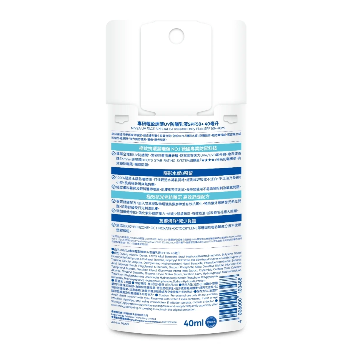 Nivea妮维雅专研轻盈透薄UV防晒乳液SPF50+ 40毫升。商品资料、价格、库存及配送信息以本页为准。