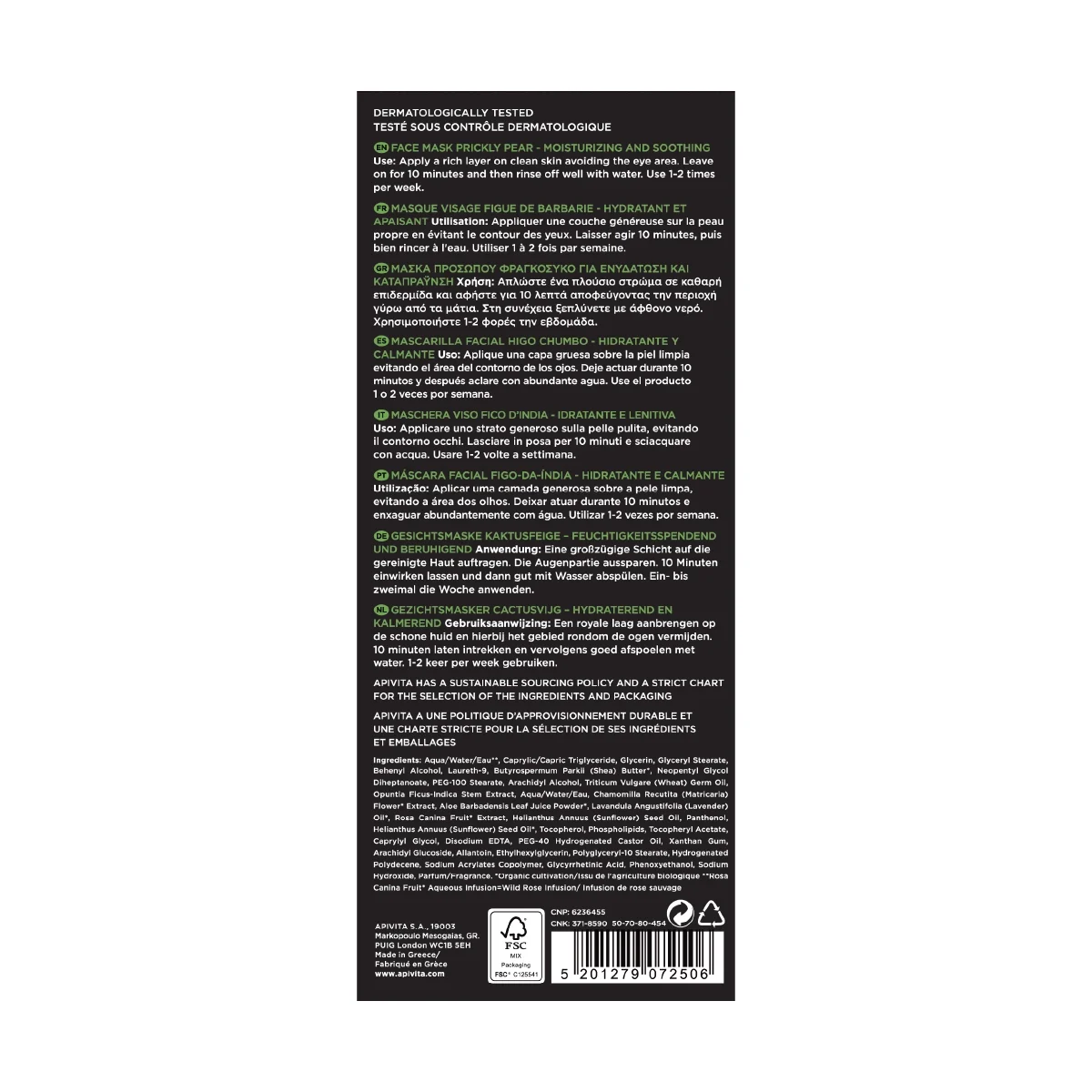 APIVITA仙人掌鎖水滋潤面膜 8毫升 x 12包