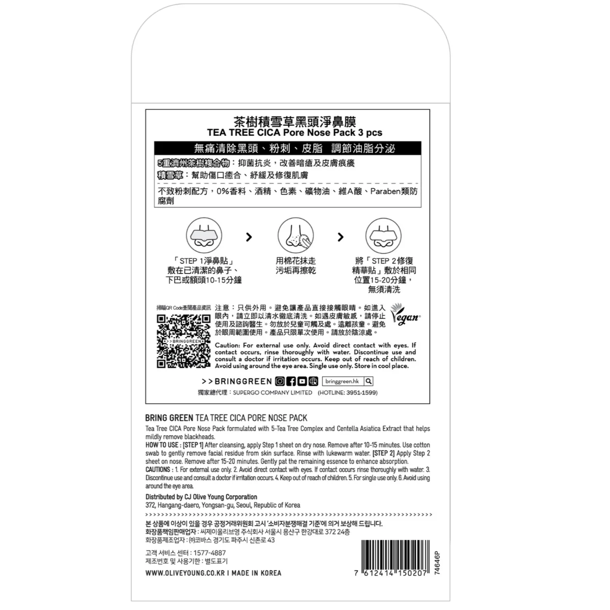 Bring Green茶樹積雪草黑頭淨鼻膜 3片。商品資料、價格、庫存及配送資訊以本頁為準。