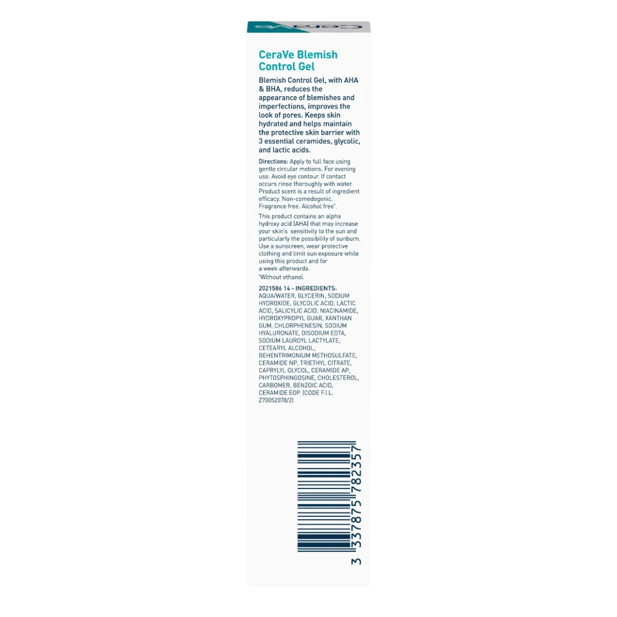 水、甘油、氫氧化鈉、乙醇酸、乳酸、水楊酸、菸鹼醯胺、羥丙基瓜爾膠、黃原膠、氯苯醚、玻尿酸鈉、EDTA二鈉、月桂酰乳酸鈉、山嵛醇、 UM 甲基硫酸酯、神經醯胺NP、檸檬酸三乙酯、辛二醇、神經醯胺 AP、植物鞘氨醇、膽固醇、卡波姆、苯甲酸、神經醯胺 EOP