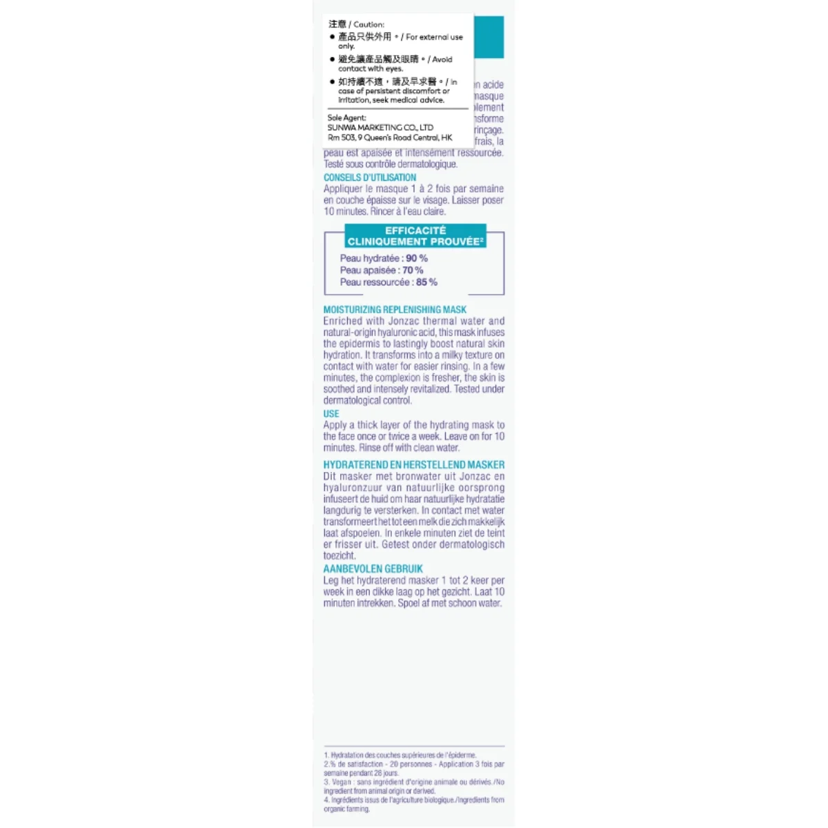 厚厚塗上面膜,靜置10分鐘後以清水洗淨,再進行後續護膚程序。 注意: 產品只供外用。 避免讓產品觸及眼睛。 如持續不適,請及早求醫。