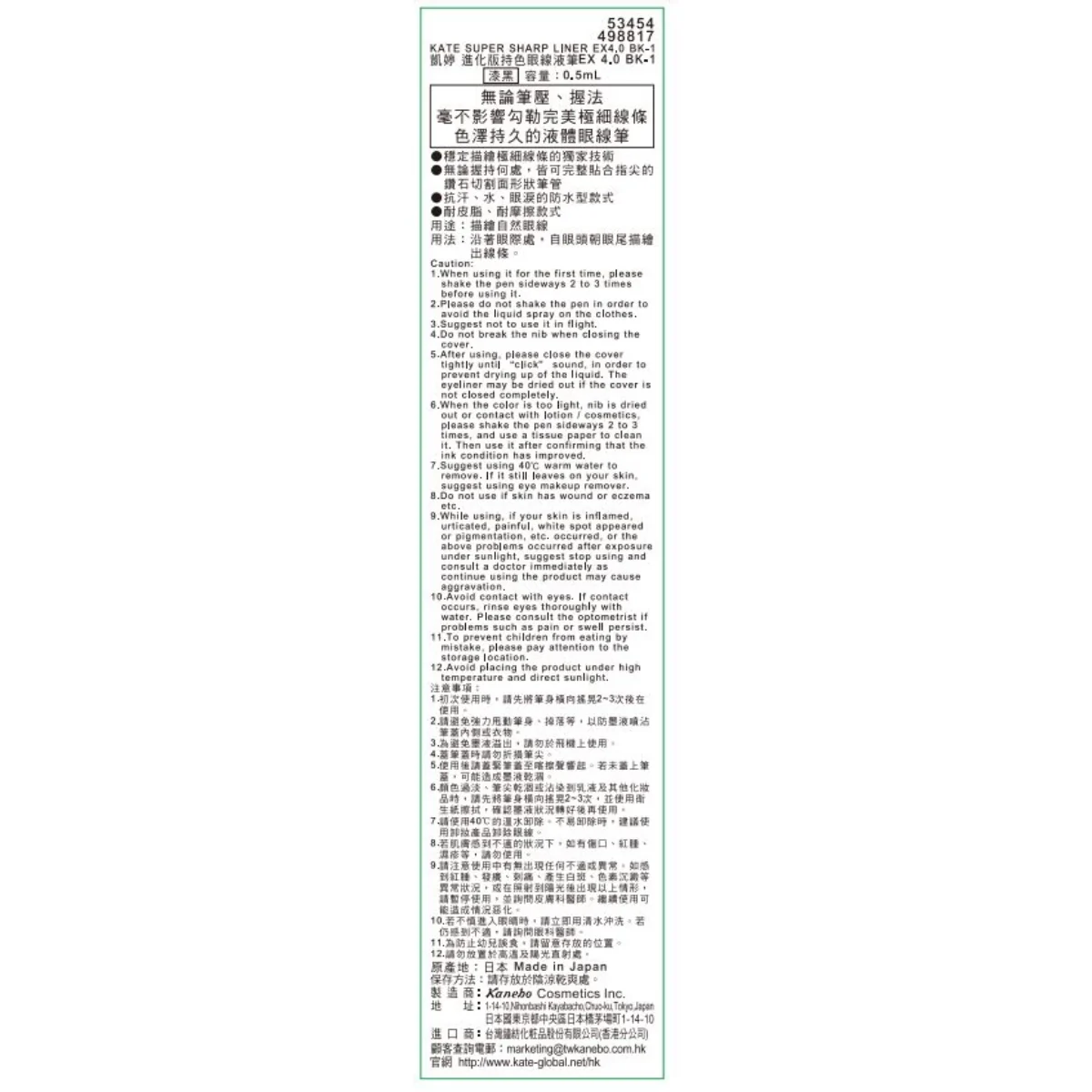 Kate凱婷進化版持久眼線液筆EX4.0 (BK-1 漆黑) 1支