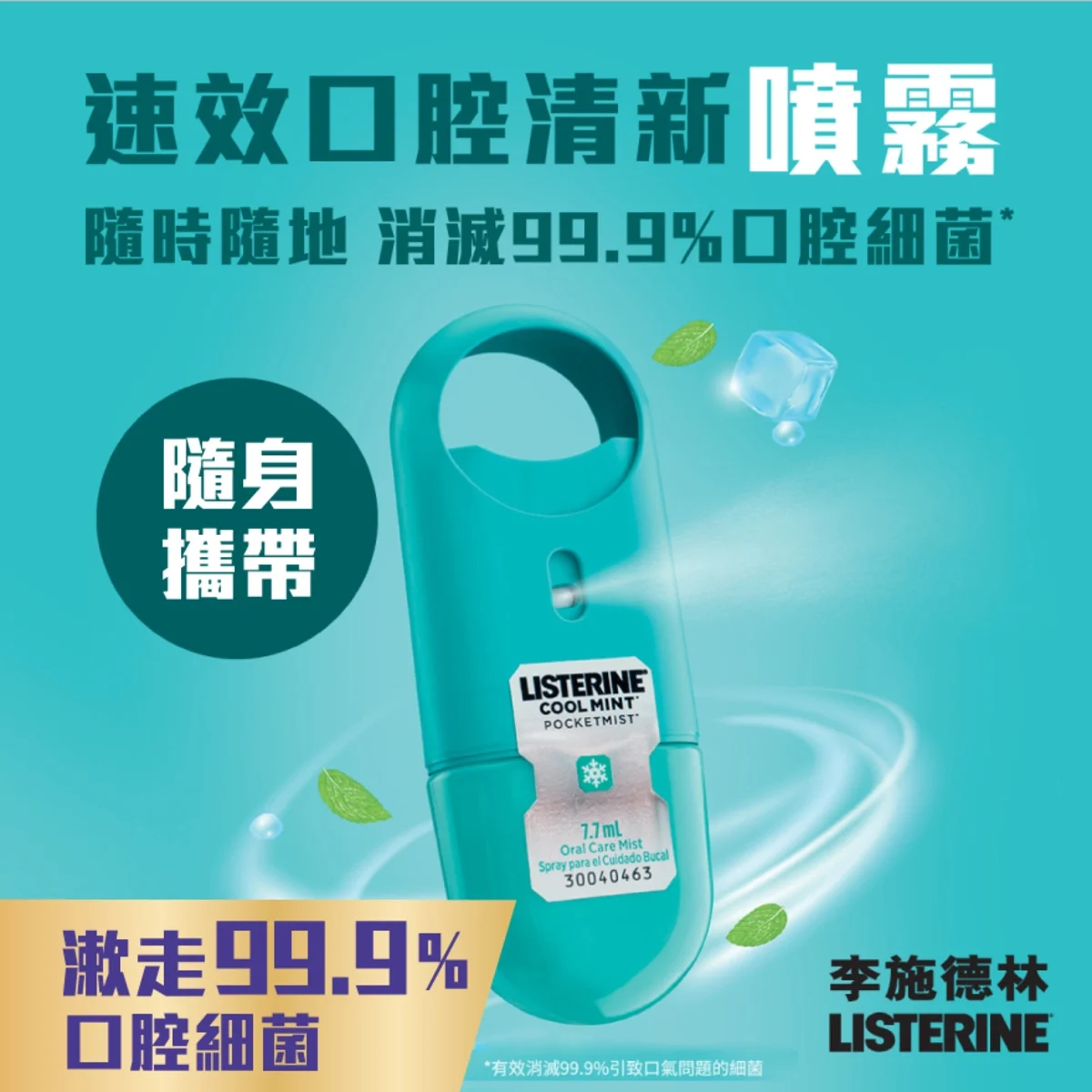 有效消滅99.9%引致口氣問題的細菌,可迅速清除口氣、異味。隨時隨地保持口腔衛生