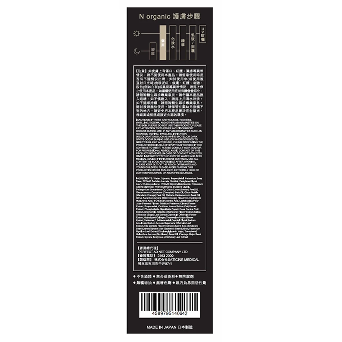 水、甘油、異戊二醇、氫氧化鉀皂基、PEG-80 山梨坦月桂酸酯、山梨醇、戊二醇、月桂羥基磺基甜菜鹼、PEG-20 甘油異硬脂酸酯、椰油酰甘氨酸鉀、 苯氧乙醇、丁二醇、玫瑰天竺葵油、檸檬果皮油、樟樹樹皮油、柑橘果皮油、小荳蔻種子油、苦橙花油、水解玻尿酸、3-O-乙基抗壞血酸、乳酸桿菌/梨汁發酵濾液、紅三葉花萃取、丙二醇、鳥氨酸、燕麥仁萃取、磷脂質、糖脂質、木瓜蛋白酶、玫瑰果萃取、洋甘菊花萃取、鼠尾草葉萃取、金盞花萃取、水解膠原蛋白、旱金蓮花萃取、卡波姆、1,2-己二醇、辛基甘油、左旋葡糖酸鈉、茴香酸鈉、石鹼草葉萃取、小葉椴花萃取、大豆種子萃取、越橘葉萃取、乙基己基甘油、海藻膠、生育酚、向日葵籽油、車前草種子萃取、朝鮮薊葉萃取