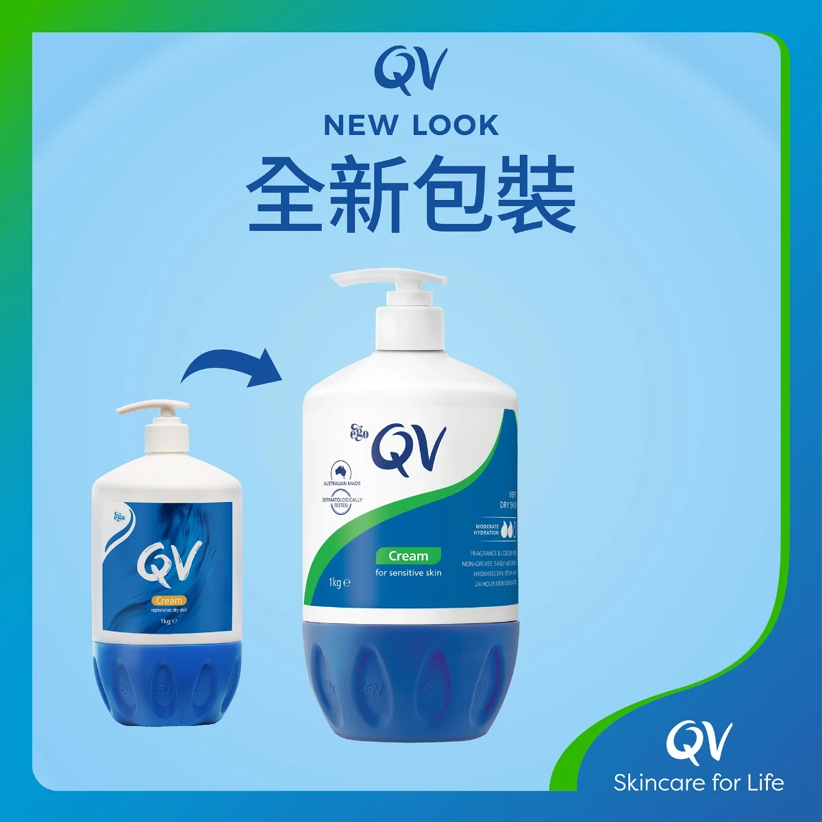 * Applies to QV Cream (Pump). Based on results of skin hydration evaluation (corneometer). Measurements taken pre-application and 24 hours after application.
